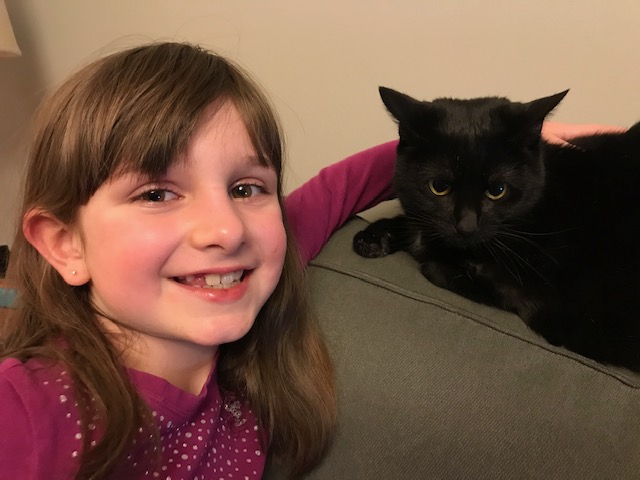 I have 2 cats. 1 is a black short haired named: Chloe. 1 is a gray short haired named: Bella but we call her: Monkey.